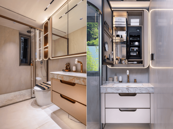 首创闵行美妆四件套,科勒美妆龙头、美妆镜柜、美妆冰箱,搭配“顶+面双补光照明”,将女性关怀落于每一处细节