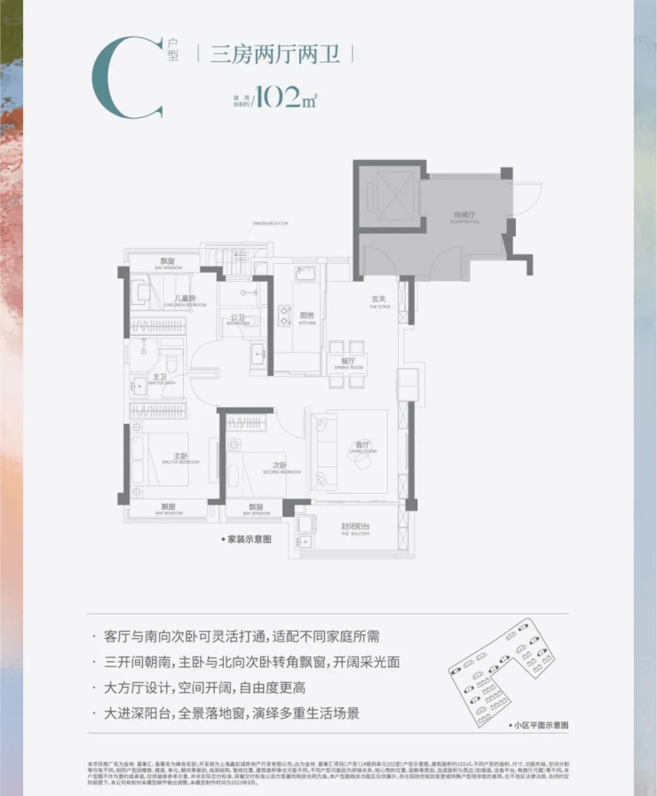 主力户型:约89㎡三房、约102㎡三房、约160㎡叠拼