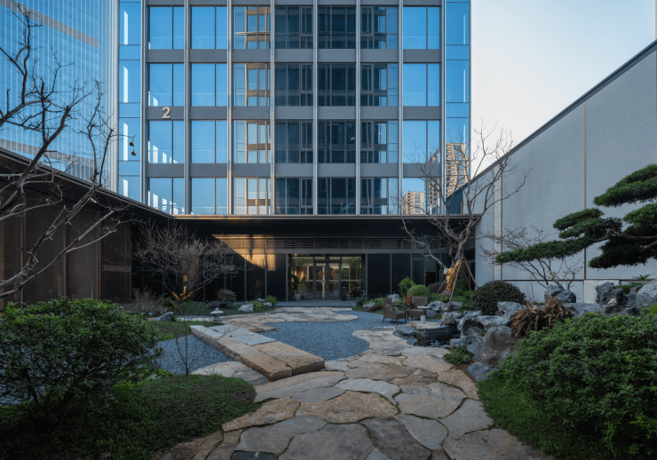 既提升了产品价值,又为城市天际线增添了一抹舒展而有节奏的美感。地块内不同高度的商务办公楼,在丰富天际线景观的同时,也塑造了错落有致的城市空间意象。