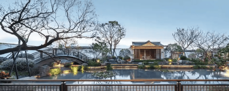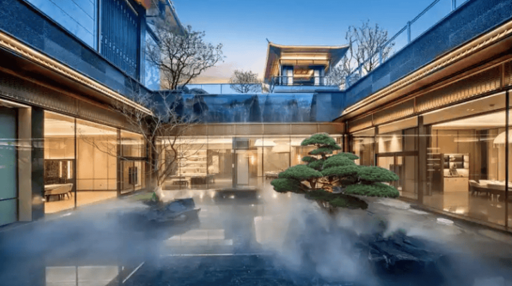设计创新:融合宋代建筑精髓(重檐坡屋顶、方格挂落等元素),颠覆传统叠墅动线设计