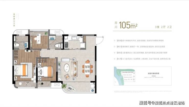 2、(方正)户型方正,高得房率,超12米三开间朝南,动静分区,流畅居家动线;