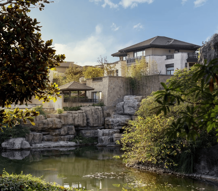建筑风格独特:采用“廊亭檐院”传统风格,配备四重庭院、270°环景客厅及十大类六十余项精装细节,营造出浓郁的中式居住氛围。