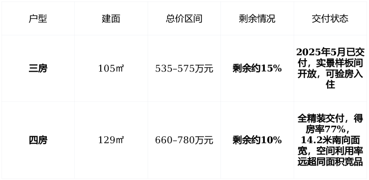 💰 在售情况:实景现房清盘中,2025年已交付,尾盘稀缺,得房率超77%