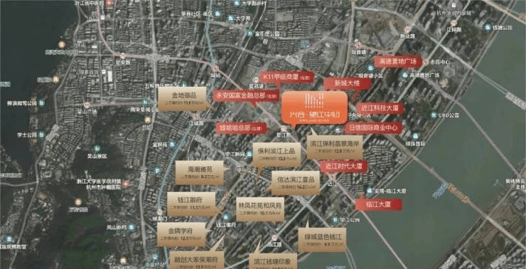 兴合·望江中心处于两个板块交界位置:地处钱江新城,西南方向是南星桥豪宅区;