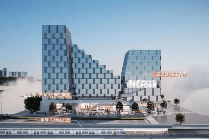 兴合·望江中心以“悬浮”概念为设计灵感,致力于打造生态开放的立体城市场所:采用地铁上盖 + 约5000方商业邻里中心 + 空中会客厅的“三重悬浮”设计,让城市繁华相互交融,提升生活品质,使整座建筑成为钱江新城又一“城市艺术佳作”。