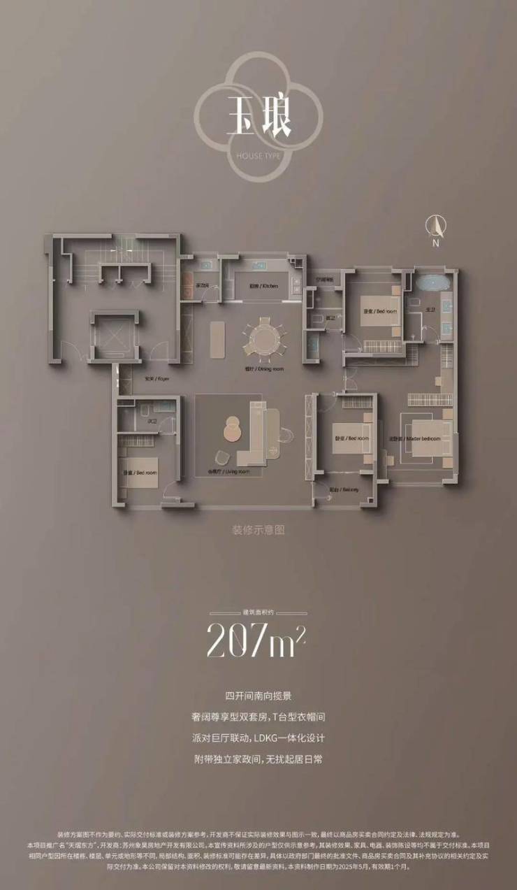 户型范围:163-251㎡(主力186㎡、207㎡、251㎡),套均面积超200㎡,四房三卫起步