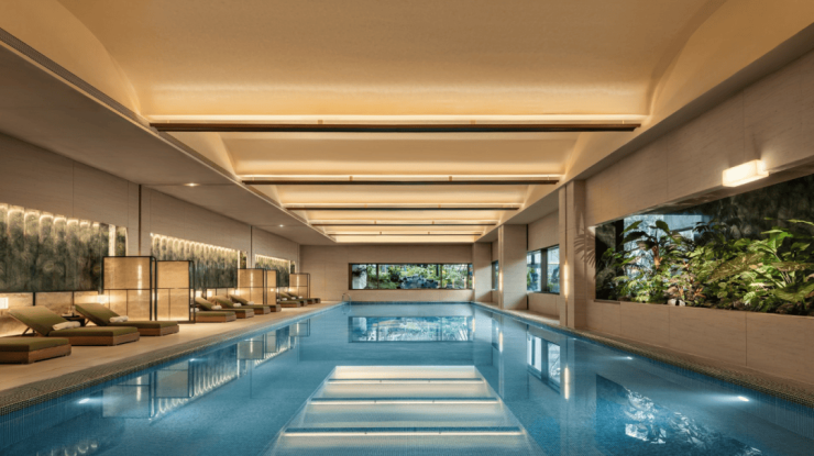下沉式会所:1800㎡含恒温泳池、健身房、VIP茶室,对标一线城市顶豪标准