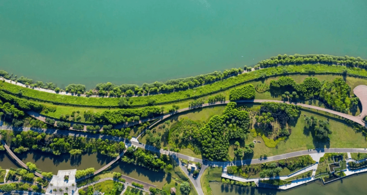 一轴:中央生态景观轴,串联水景、竹林、步道