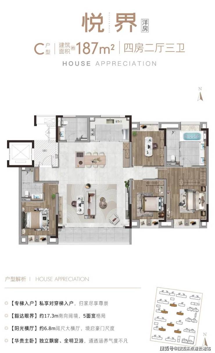 【户型区间】建面约143-187㎡(143/167/169/187㎡)