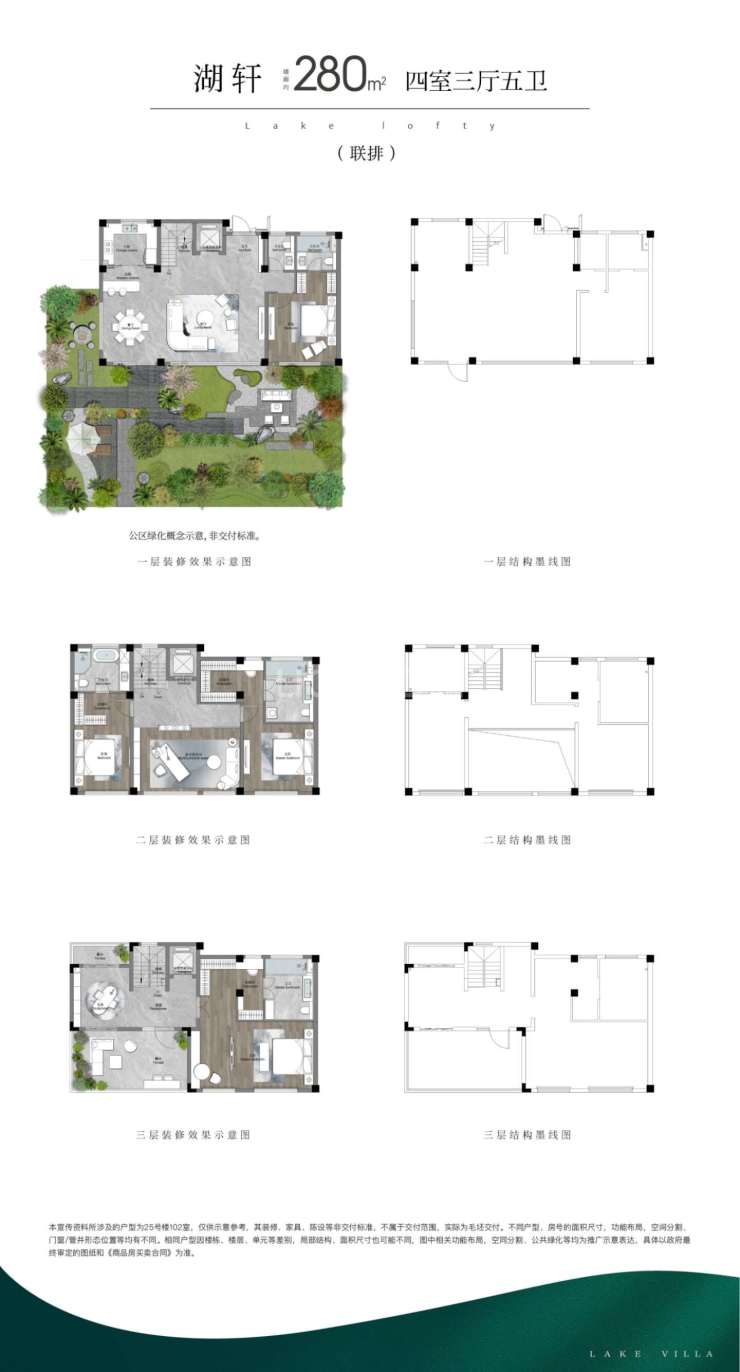 建面 280㎡的 4 居室分布在 25#,1 梯 1 户,层高 3.20 米,总楼层 3F,总价 800 - 850 万,大空间设计,彰显居住品质。