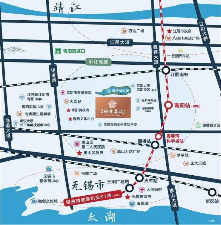 项目直径约2公里范围内还拥有青阳实验小学、青阳中学以及正在建设中的江南大学江阴校区等优质学校。