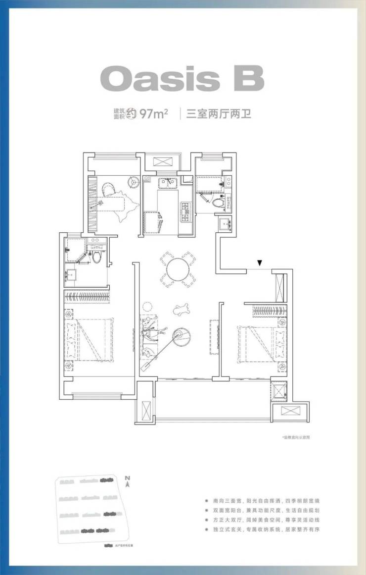 基于客户出发,社区打造86-143㎡(星图)、105-170㎡(熙岸)全户型洋房产品设计,满足不同人群生活现状所需。