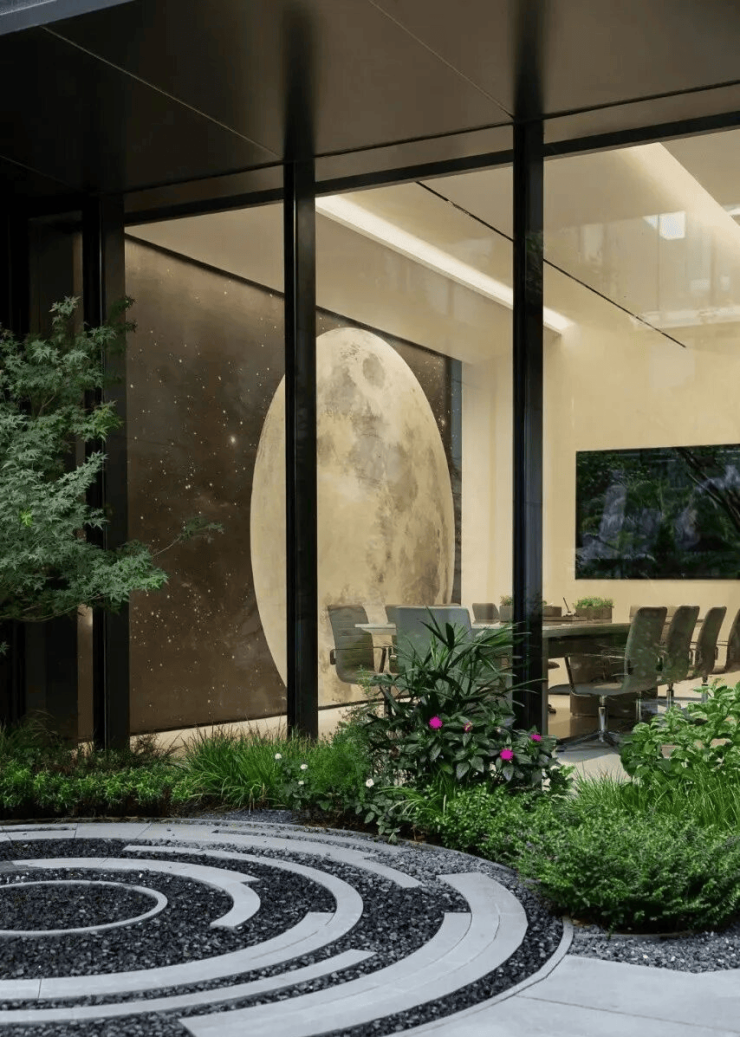 西溪印兼具首层接待、中间层办公、顶层休憩、地下空间社交等功能,打造企业家专属折叠空间,满足企业家对自然、舒适的向往