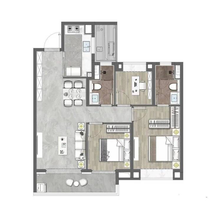 ▼建面约99㎡三房两厅两卫户型