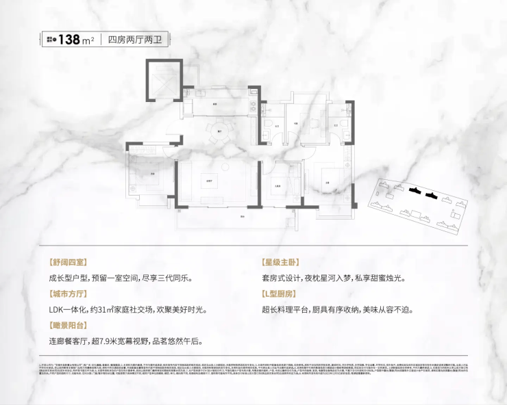 138平方米四房:总价大约在287.5万至292万元之间,单价在20800至21200元/平方米。这个户型四开间朝南,拥有5.6米宽的客厅和独立衣帽间的主卧,是改善型购房者的天花板之选。
