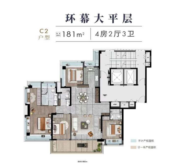 181㎡户型:3+1房两厅三卫,6.3m宽厅衔接双阳台,总价约730万