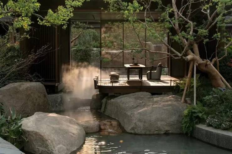 流觞涧:采用中国黑整石手工打造,结合江南青砖元素铺砌