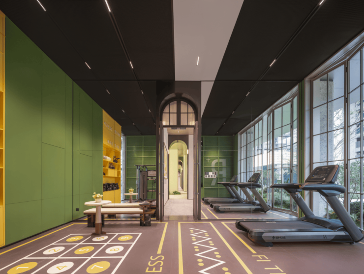 8大主题架空层:宠物社交、共享办公、阅读角、茶室、运动区、艺术展廊、老年活动、亲子互动。