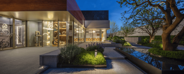 40米奢阔门庭:现代极简灰调立面,金属线条+玻璃幕墙,归家即仪式感。