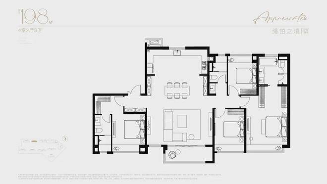 户型与价格:主力户型为 105-198㎡精装 3-4 房,