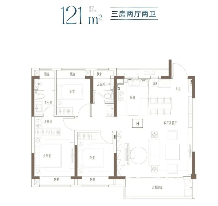 南北通透、三开间朝南、主卧套房、双阳台配置,提升居住品质