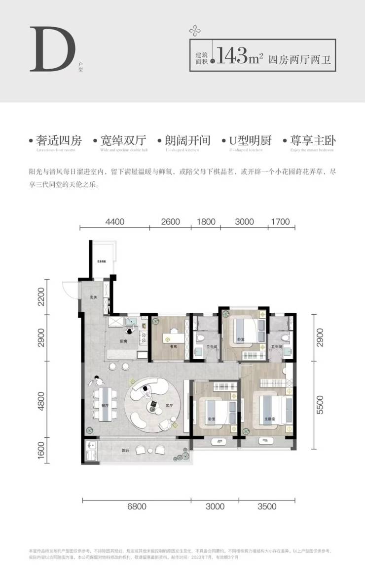 项目精装交付标准包含科勒卫浴、全屋新风及地暖系统,143㎡户型更配备约6.8米大阳台+南向双飘窗,组成约13.3米的奢阔景观面