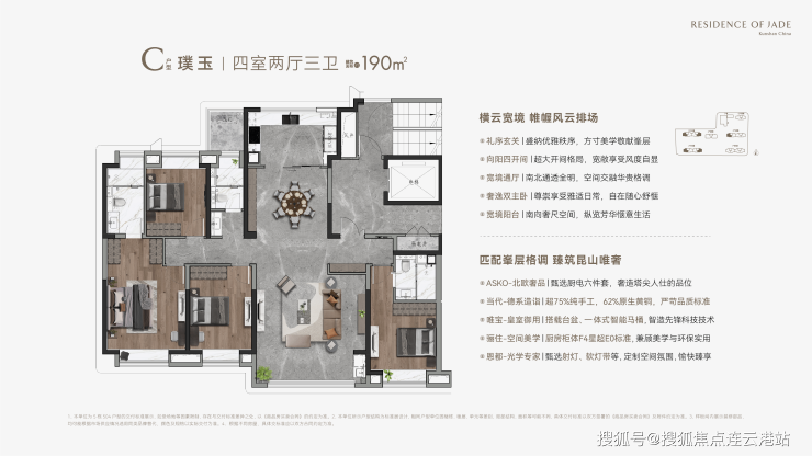 聚集北欧品牌—ASKO、德国精工传奇—当代 、德国铂浪高、骊住、日门、LD、西勒奇、西门子、赛银、圣象等一众国际一线品牌,更是全昆山首次采用三层实木地板、铸铝进户门的项目。如此逆天的配置领衔昆山精装天花板,加上品质化的细节处理,足以俘获大批买房人的心,让一众竞争对手望尘莫及!
