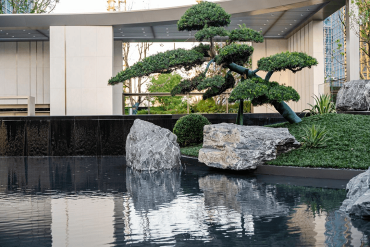 外立面:采用铝板+石材+玻璃组合,现代简约风格,提升建筑美观度与耐久性。