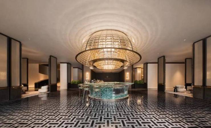 精装标准达8000元/㎡,采用国际一线品牌,如嘉格纳六件套厨电、当代龙头、劳芬卫浴、大金中央空调等,地面铺贴意大利雪花白大理石,墙面为手工拼花木饰面,部分区域使用范思哲黑奢石台面和金箔银箔镶嵌工艺,对标一线城市顶豪标准。社区还配备约2600㎡重奢会所,涵盖私宴厅、恒温泳池、健身中心、红酒雪茄吧等高端设施。