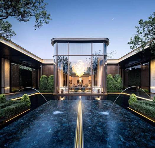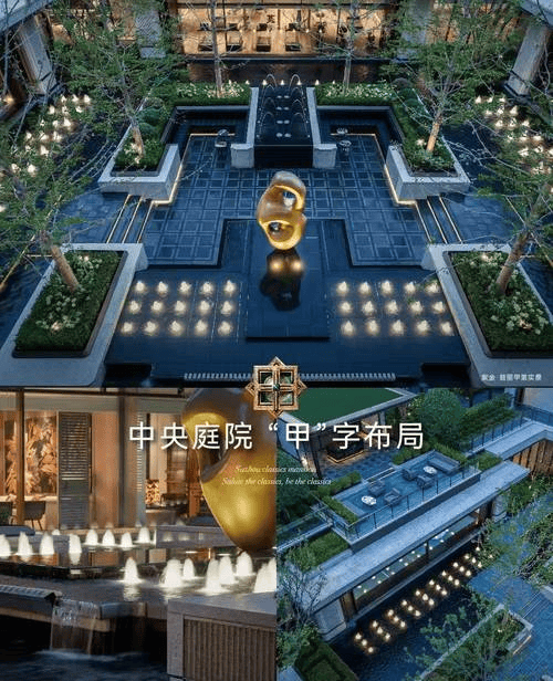 外立面采用白世茂奢石与铂金钻铝板,打造“银甲金线”专利设计,园林融合东方意境与意大利海派风格,以两轴两园三进礼序布局,社区入口采用海鸥丽晶酒店同款石材工艺,水景及后场吧台使用顶级蓝翡翠奢石,细节处彰显品质。