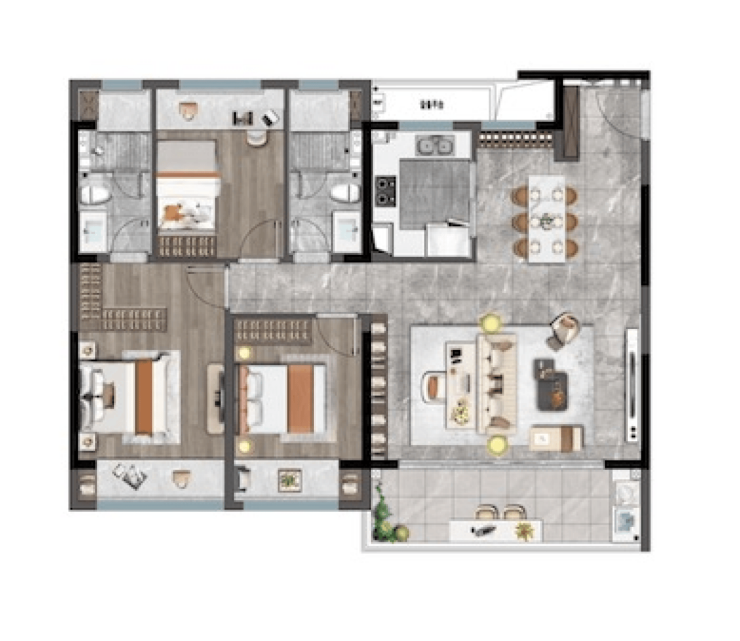 得房率约75%双阳台设计横厅布局南北通透,采光优越