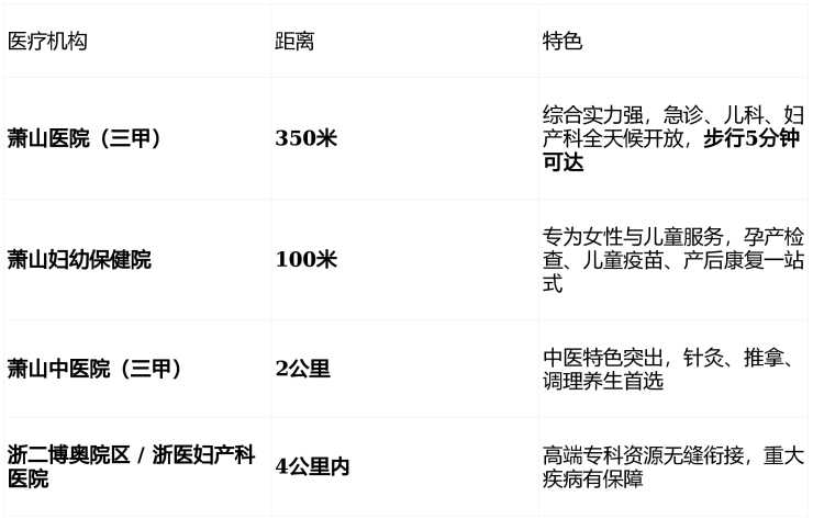 周边公园环伺:银河公园(1.5公里)、余暨公园(2公里),大型绿地成片,空气清新。