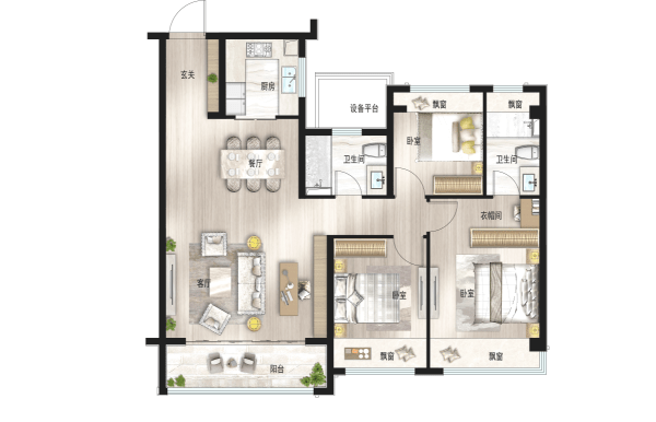 交付标准全精装交付 ,含 美的中央空调+厨电+3m净水器+智能照明+全屋收纳系统 ,省去15–25万装修成本,拎包入住