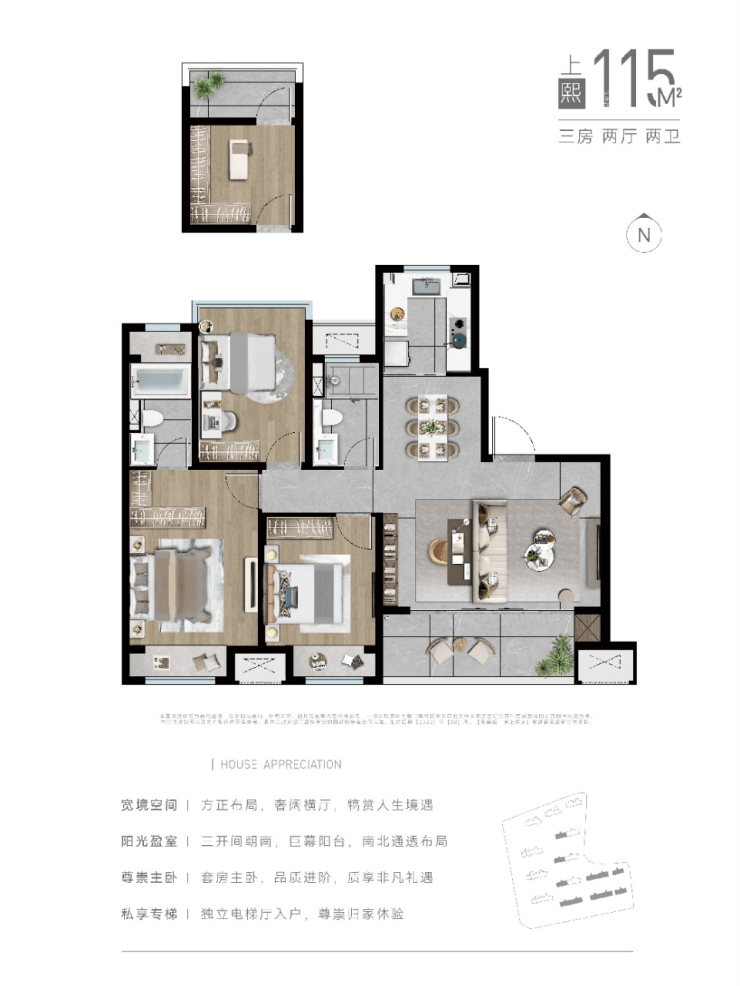 115㎡三居:总价 约202.5万元(备案均价约22436元/㎡)