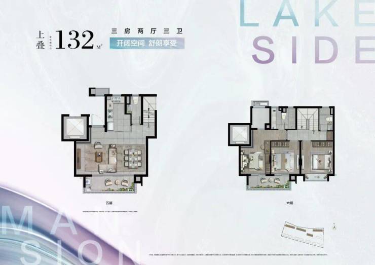 上叠:建面约132㎡,三房两厅三卫