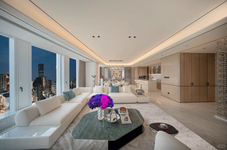 • 空间配置:230-420㎡大平层采用“空中跃墅”设计,主力户型客厅面宽达10-14米,配备全景落地窗,部分户型复刻兰博基尼超跑楔形空间;