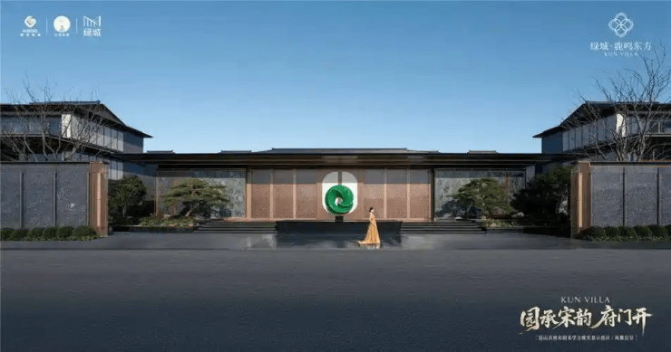 建筑采用“屋檐、屋身、台基”三段式东方形制,门庭高达 40米 ,镶嵌白玉团扇门饰,归家仪式感拉满。