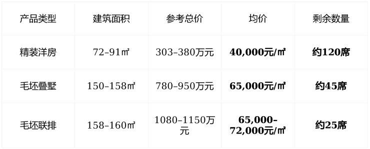 🏠 在售情况:洋房均价4万/㎡,叠墅6.5万/㎡,剩余房源充足,热销中