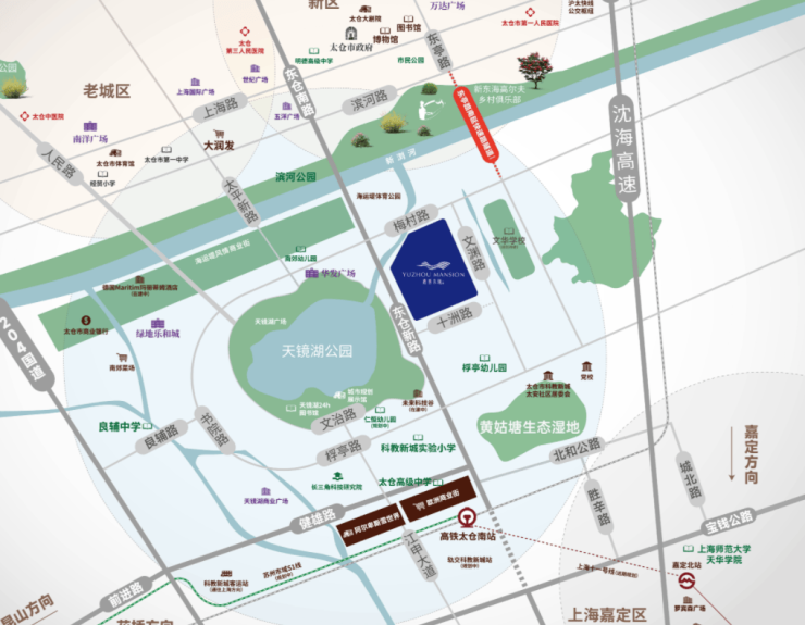 轨道交通:距太仓南站约1.5公里,乘坐沪苏通铁路30min即可直达上海虹桥枢纽;未来还规划有苏州S1轻轨支线及嘉闵线,建成后将进一步拉近与苏州、上海的时空距离^。