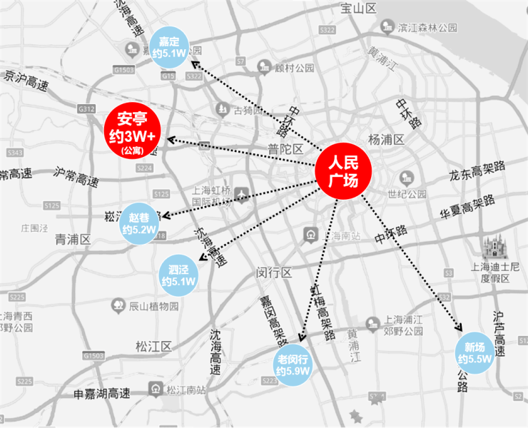 安亭直线距离人民广场约25公里,同等距离的板块,安亭性价比显露无疑。