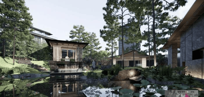 园林设计:以《潇湘水云》为灵感,打造「七弦八词二十九艺」园林,七弦古琴造型为轴线,融合琴、墨、茶、吟、禅五大生活美学。