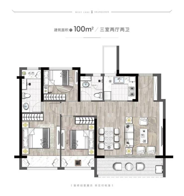 户型面积:100-165㎡,涵盖三室两厅两卫、四室两厅两卫、四室两厅三卫、五室两厅三卫等多种户型。