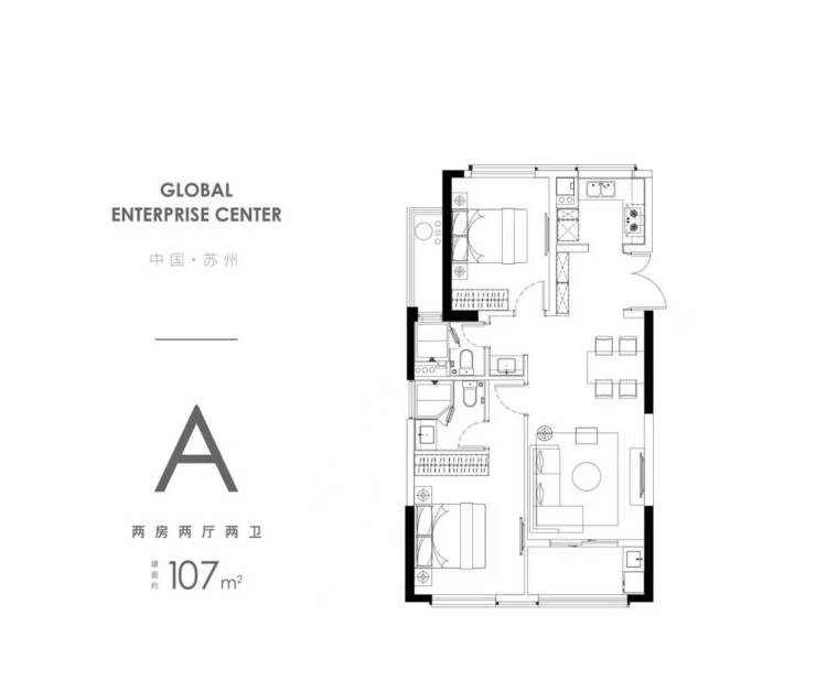 -【建面107㎡2居】价格待定,分布于13#、21#、14#、19#等楼栋,2梯4户,层高3.15米,总楼层30-31F。