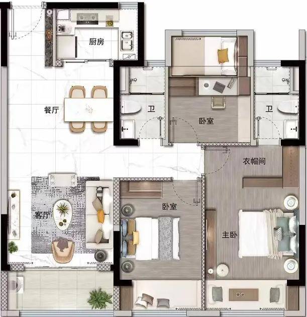 户型优势:主力户型南北通透、全明设计,93㎡户型为集团"三冠王"户型