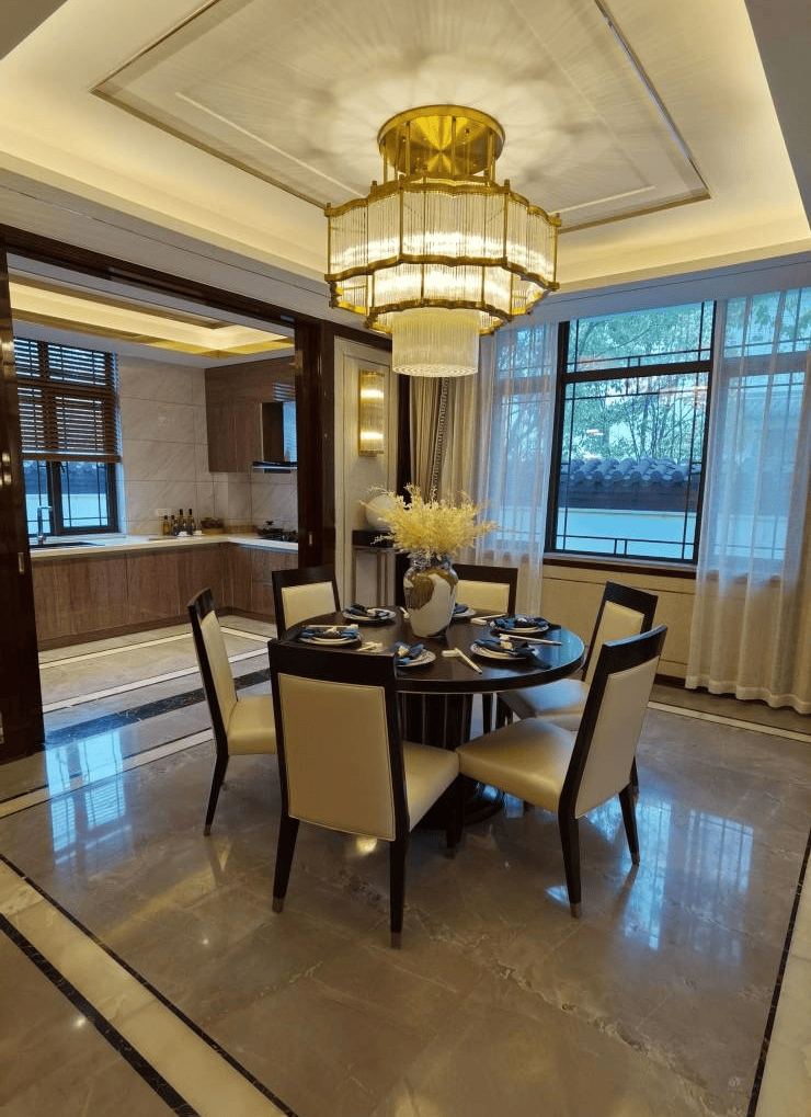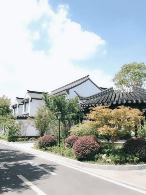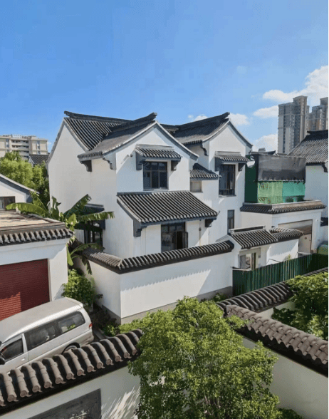 采用纯中式粉墙黛瓦风格,强调"宅院合一"理念
