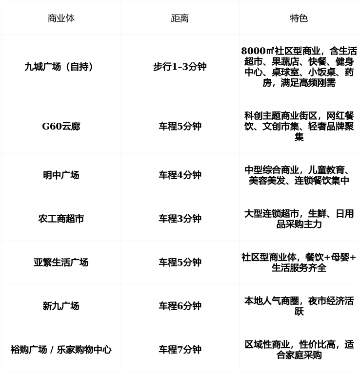 🛍️ 商业:8000㎡自持商业+七重商圈,15分钟生活圈全覆盖