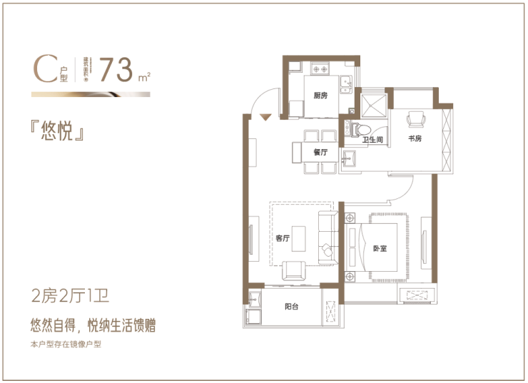 建面约73㎡小户型,双开间朝南+客餐厅一体化+2房功能性,非常适配过渡的年轻小家庭,首付约55万起。