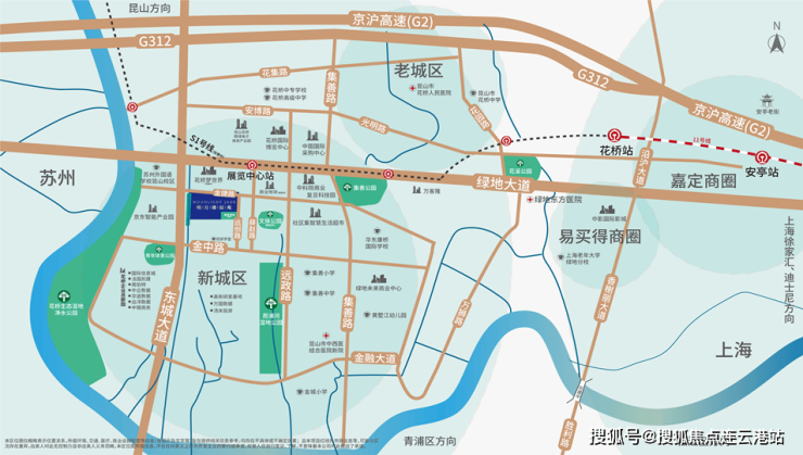 城市发展,交通先行。上海地铁11号线加速了花桥上海两地连接;沪宁高速、312国道、上海绕城高速、地铁S1号线(建设中)交汇……同城化深入发展,承接着更多上海的外溢需求。