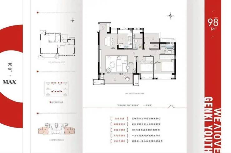 建筑类型:纯小高层社区,容积率1.8,绿化率30%-33%,车位配比1:1.26