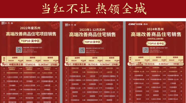 值得一提的是,同系列的太泽之星丨阅湖和御湖已经是吴中区的销冠了,连续三年拿下500万以上住宅的销售冠军,2024年还进入了苏州市区住宅销售双榜单前五。群众的眼睛是雪亮的,这么多人选,肯定错不了。